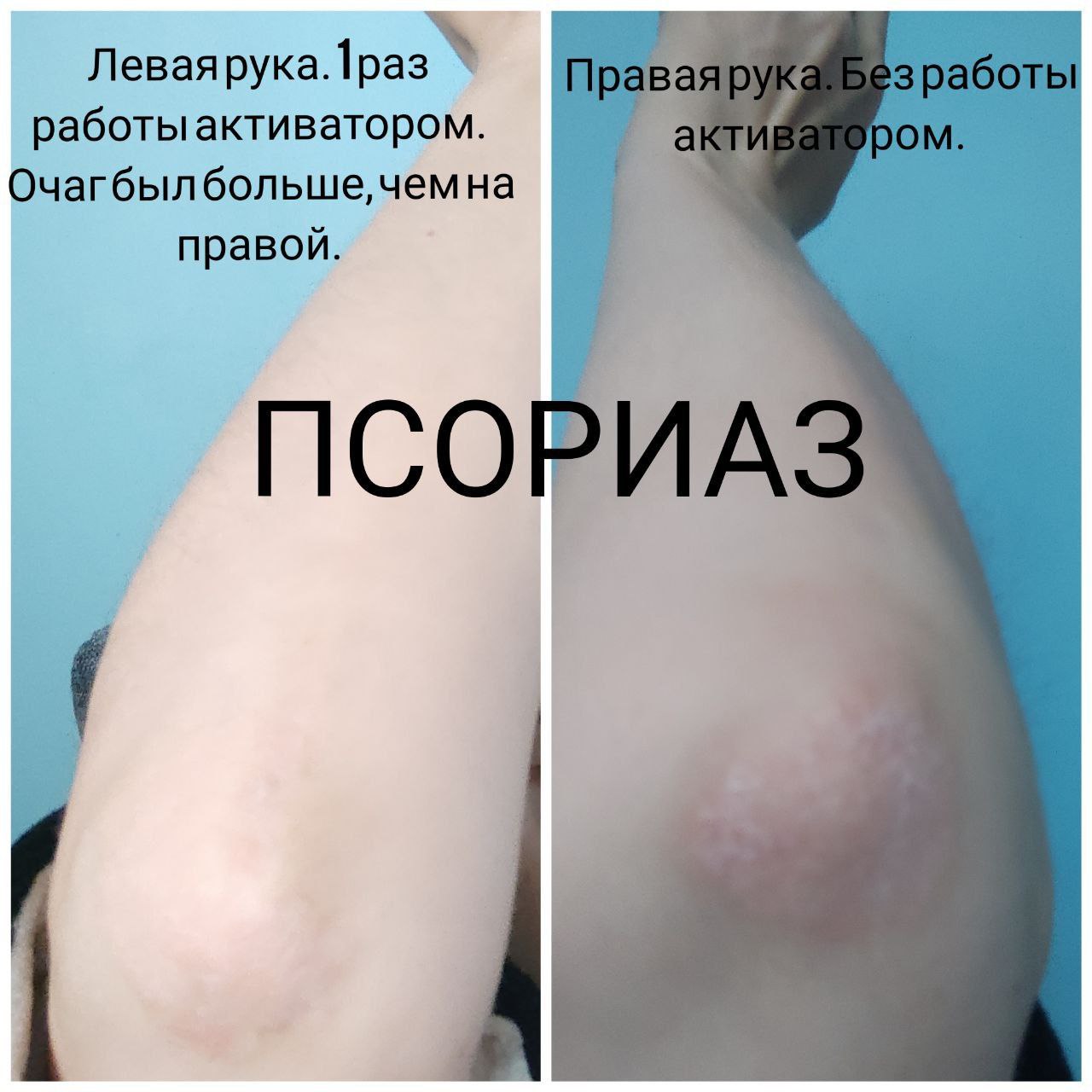 О, чудо! Активатор лечит псориаз!!! На левой руке действие всего — 4-5 минут и такой результат: кожа гладкая стала и ушло покраснение.